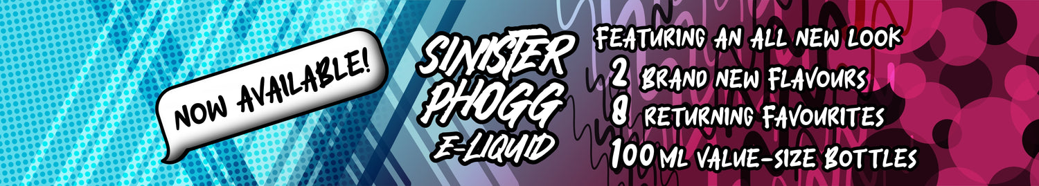 Sinister Phogg E-Liquid is back and better than ever! With a fresh new design, launching with eight classic and two brand-new flavours that we've been dying to share with you, and all in a cool, new, value size of 100mL.